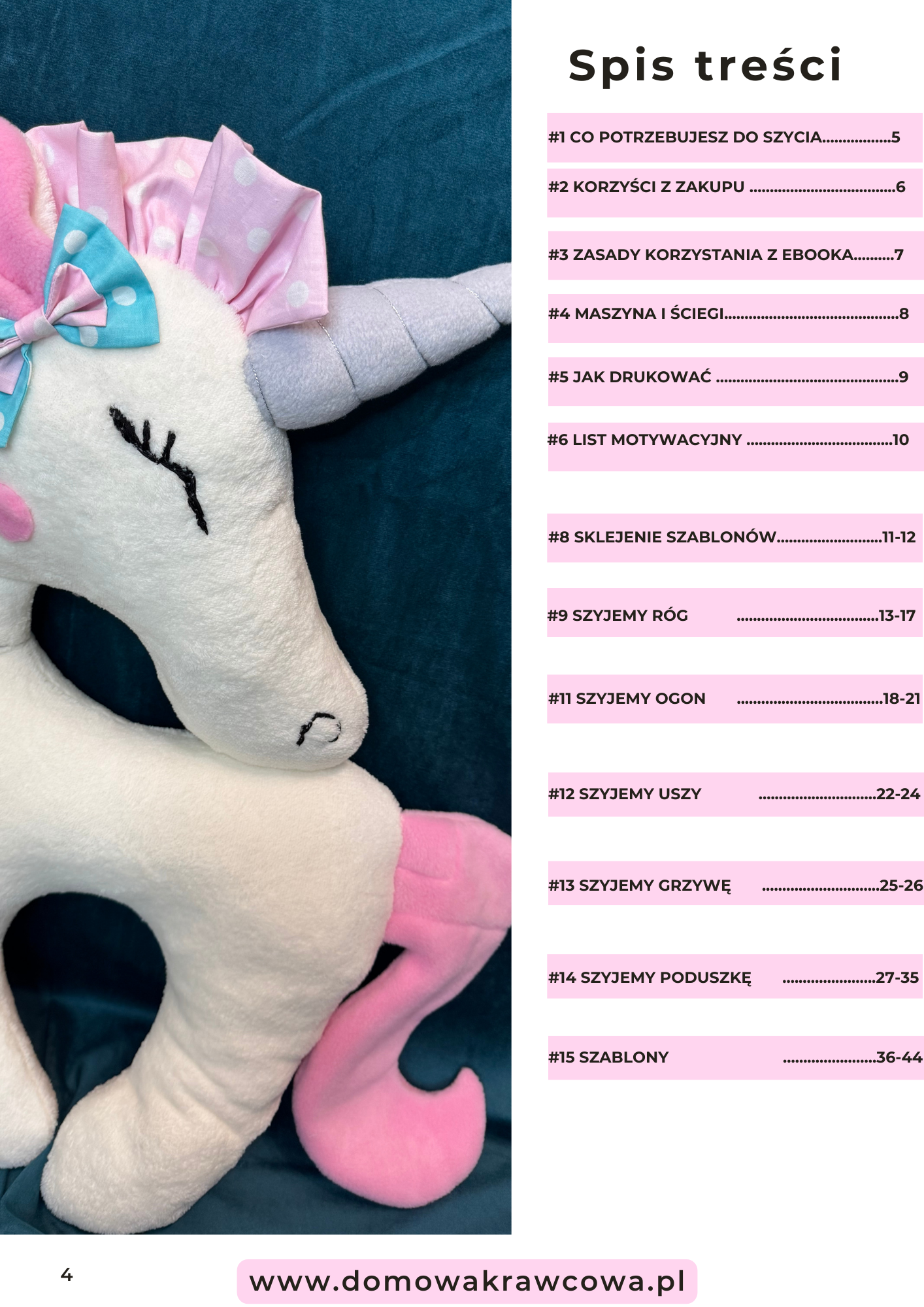 E-book „Jak uszyć poduszkę jednorożec” – Wykrój i Instrukcja Krok po Kroku | Domowa Krawcowa